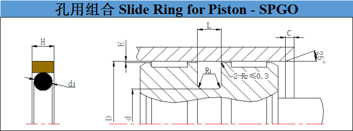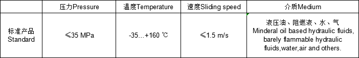 滑動材料用填充聚四氟乙烯,此密封件具有很低的摩擦阻力,消除了爬行,確保有很高的耐磨性。因單個密封件有雙向密封能力,故省去了安裝空間。